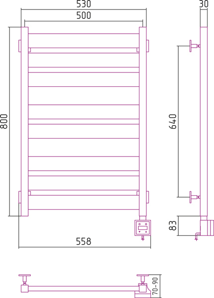 Полотенцесушитель электрический Сунержа Аркус 3.0 800x600